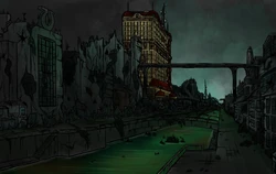 ![]() Наверху: руины Мэйнхеттена, внизу: Мэйнхеттен до сброса бомб | |