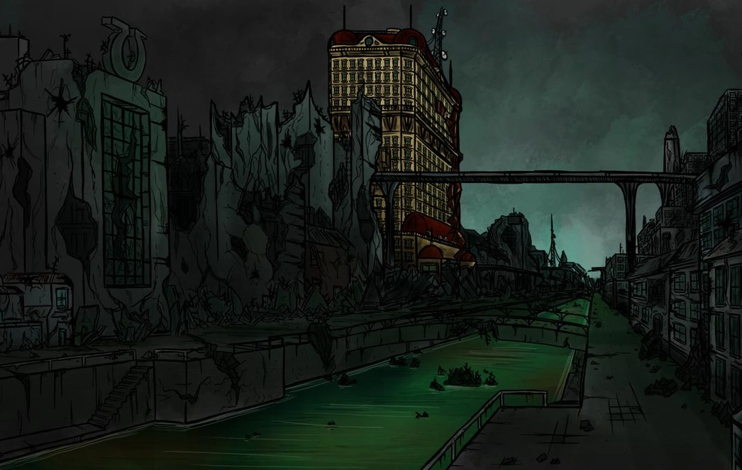 Жар-бомба превратила город в руины, и только местное здание Министерства Чародейных Наук - Башня Тенпони уцелела, в которой затем поселились пони.
