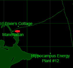 Мэйнхеттен (англ. Manehattan) — довоенный метрополис на юго-западе Эквестрии, один из самых крупных и густонаселённых городов страны. Был разрушен жар бомбами, и от города остались лишь руины.