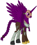 Позже, когда в Последний День пламя мегазаклинаний обрушилось на землю, благодаря вышедшему из-под контроля Министерства Тайных Наук проекту по созданию Зелья Вынужденной Трансформации (или З.В.Т.), на свет появилась целая армия новых, искусственно созданных аликорнов, ставших главной угрозой на Эквестрийской Пустоши, во главе которых, стояла таинственная Богиня.