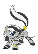 Зебры – высокоразвитая и цивилизованная раса четвероногих непарнокопытных млекопитающих, имеющих как определенное сходство с пони, так и принципиальные отличия, вроде черно-белой полосатой шерстки и искусно завитых глифов (аналогов кьютимарок пони) похожих на "африканские" иероглифы.
