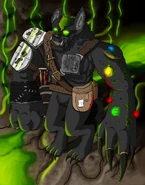 Адские гончие – это достаточно цивилизованная раса разумных двуногих псов. Их пальцы на передних лапах обладают мощными бритвенно-острыми когтями, часто используемыми ими для прокладки многокилометровых туннелей сквозь толщу земли или даже монолитного бетона или камня. По сути, эти создания являются в значительной мере сохранившими способность мыслить потомками алмазных псов, которые постоянно мутируют и изменяются под губительными излучениями мегазаклинаний и воздействием Порчи.