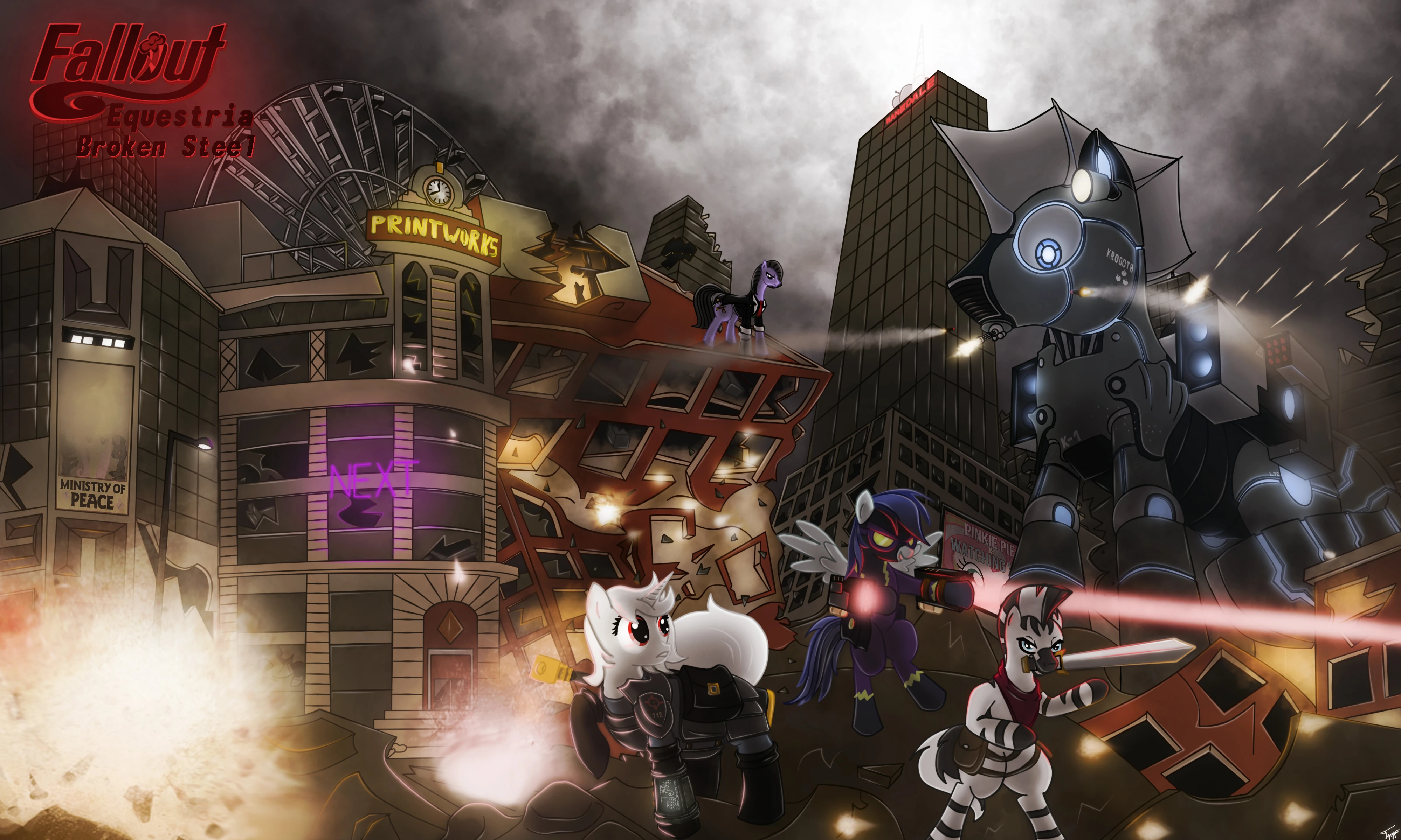 Broken Steel is a Fallout: Equestria side story written by Fallout-Brony. It is told from the perspective of Appletart Longshot, a Stable-pony raised by the Steel Rangers.
